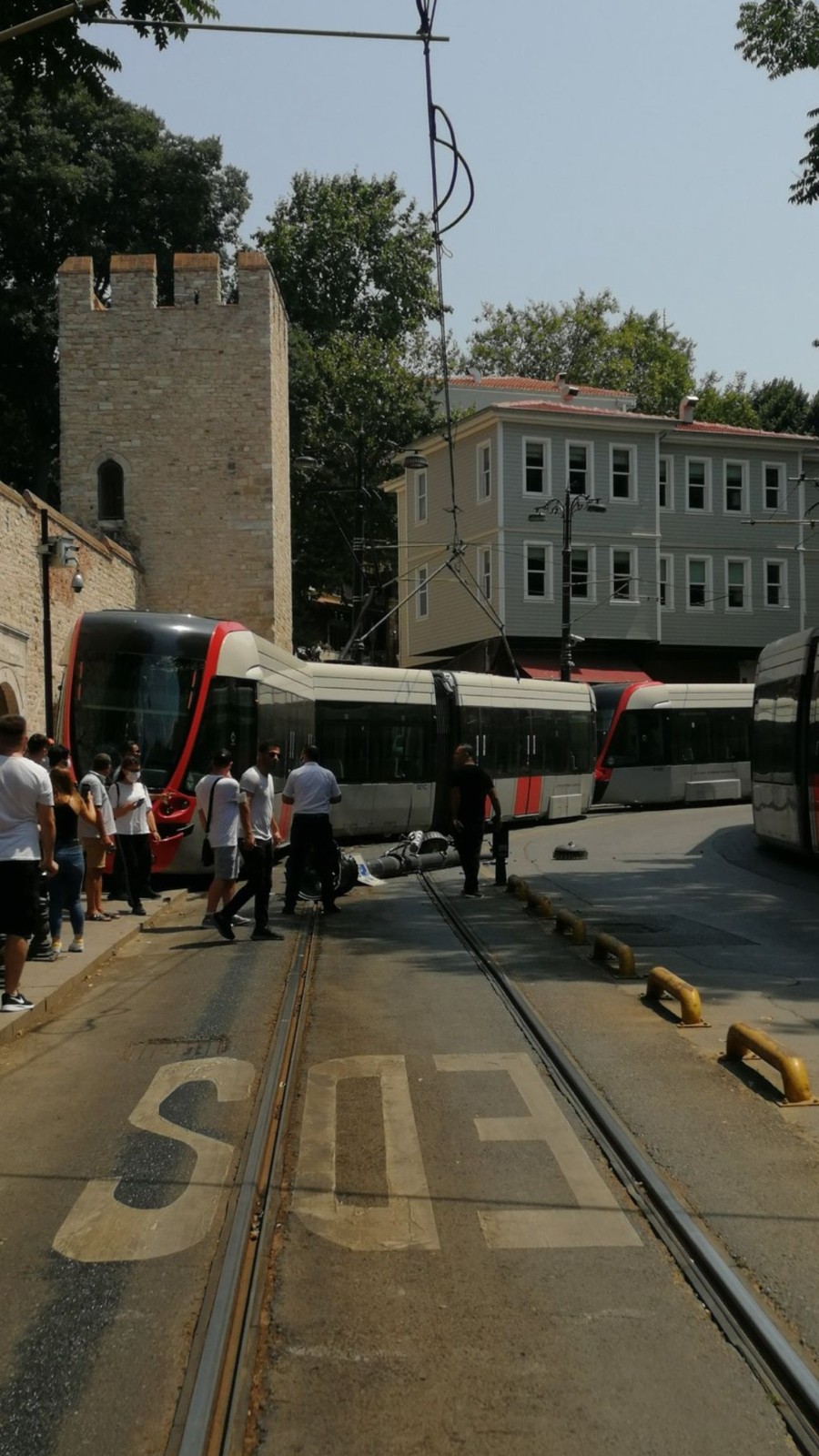 Bağcılar-Eminönü seferini yapan tramvay, Gülhane Parkı yakınlarında raydan çıkarak elektrik direğine çarptı. Elektrik direği yola devrilirken olay yerine polis ve sağlık ekipleri sevk edildi.