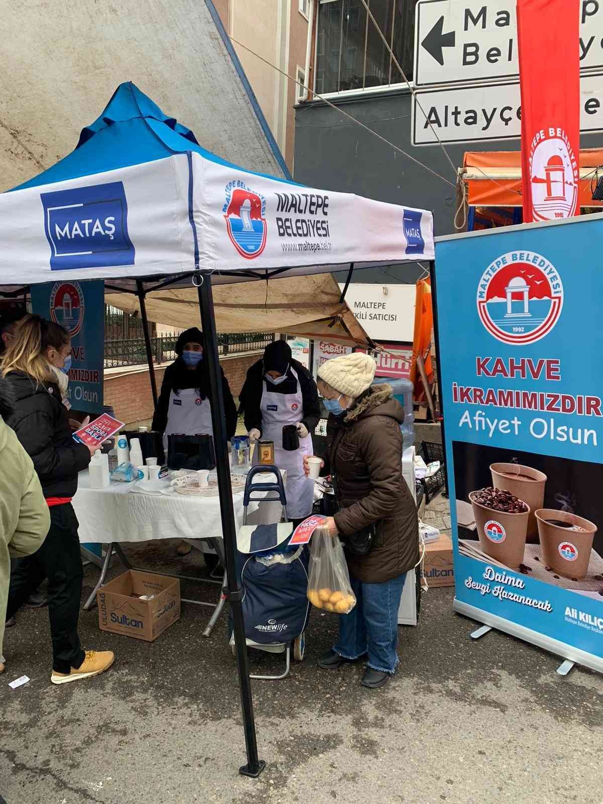 Maltepe Belediyesi semt pazarlarında alışveriş yapan vatandaşlara kahve ve su ikramında bulundu.