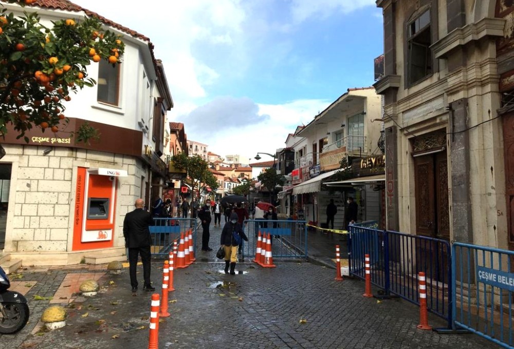 İzmir’in Çeşme ilçesinde, çarşı girişlerine korona virüsü tedbirleri kapsamında bariyerler yerleştiren ekipler sıkı tedbirler almaya başladı. Çeşme ilçesinde, korona virüsü önlemleri artırıldı. Çeşme Belediyesi, İnkılap Caddesi girişlerine bariyerler koyarak, korona virüsü önlemleri çerçevesinde denetimler yapmaya başladı. Zabıta ekiplerince gerçekleştirilen denetimlerde, maskelerin kurallara uygun takılması ve sosyal mesafe kontrol edildi. Ayrıca ekipler, caddede sigara içilmemesine de izin vermedi.