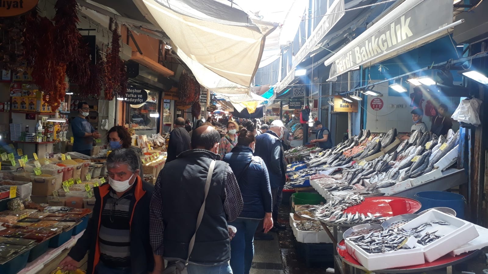 Havra Sokağı’nda alışveriş telaşı Tarihi Kemeraltı Çarşısı’nın gıda ürünleri satılan Havra Sokağı da tam kapanma arifesinde kalabalıktı. Alışveriş yapan Cemre Genç, "İşi olan da olmayan da çıkıyor. Biz mecburiyetten çıktık. İnsanlar 17 gün boyunca aç kalacaklarını, marketlerin kapalı olacaklarını düşünüyorlar. Marketlerde çok kuyruk oluyor evet ama 17 gün boyunca açık. Buralarda yığılmaya gerek yok" diye konuştu. Havra Sokağı’ndaki balıkçı esnaflarından Yusuf Çelik ise, "Kalabalık ama esnafın beklediği gibi bir iş yok açıkçası. 17 gün kapalı olduğumuz sürece dükkan kiralarını da vereceğiz. Bu süreç sıkıntılı biraz bizim için" dedi.