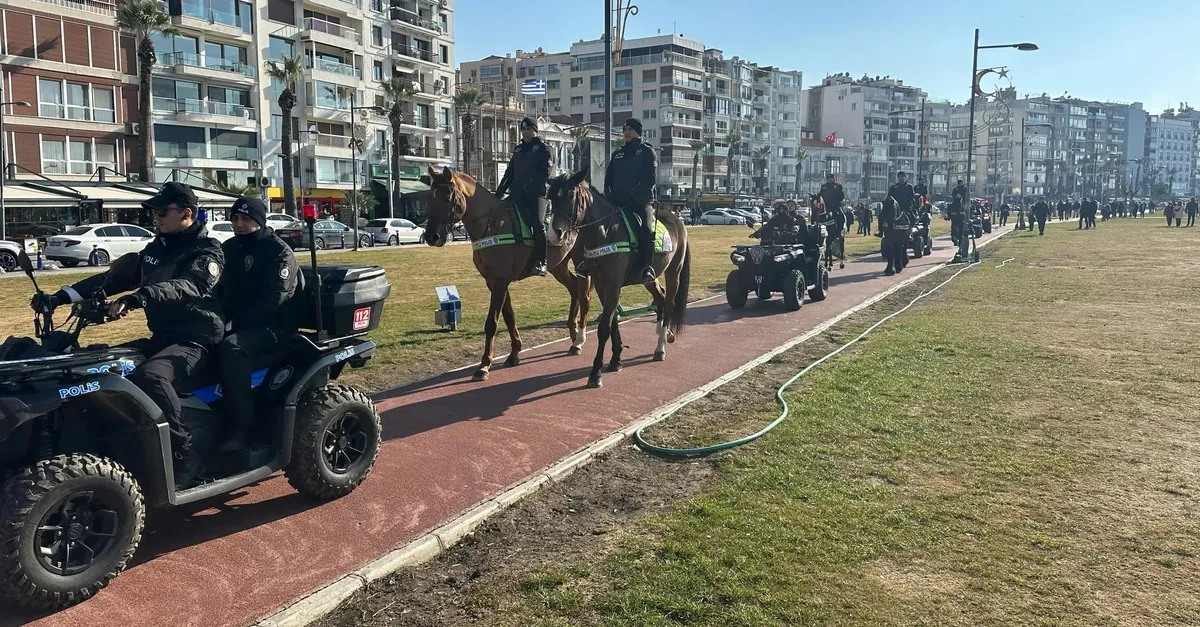 İzmir Emniyet Müdürlüğü Konak İlçe Emniyet Müdürlüğü'ne bağlı 10 ATV motorlu polis timi ile 6 atlı birlik Alsancak Birinci Kordon, Gündoğdu Meydanı, Alsancak Vapur İskelesi, Kıbrıs Şehitleri Caddesi, Cumhuriyet meydanı ve Güzelyalı Sahil Bulvarı boyunca görev yapıyor.