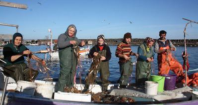 Eşlerine ve diğer yakınlarına yardım eden balıkçı kadınlardan Emine Civil, Birsen Kakıl ve Ayşe Yüksel, "Bizler balıkçı bir aileden gelmeyiz. Bu günlerde mezgit çok oluyor. Mezgitlerin ağlardan ayıklanmasında erkeklere yardım ediyoruz. Bazen denize de gittiğimiz oluyor" dediler.