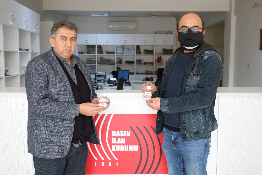 Basın İlan Kurumu Kahramanmaraş Şubesi, korona virüs önlemleri kapsamında kentte görev yapan basın mensuplarına el dezenfektanı hediye etti.