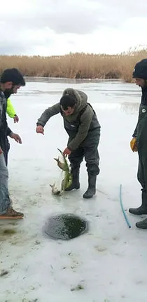 İlkbaharda inci kefali avlarken, kışın sazan avladıklarını söyleyen Şahin Kaya isimli vatandaş ise "Burası tatlı su ile tuzlu suyun birleştiği noktadır. İlkbahar aylarında inci kefali avlıyoruz. Kışın da burası buz tutuyor ve buzun kalınlığı 50 santimetreye ulaşıyor. Bizler burada buzları baltayla delip ağlarımızı seriyoruz. Sonra inci kefali, aynalı sazan avlıyoruz. Kışın arkadaşlarımız İstanbul'dan buraya balık avlamak için geliyor. Bazen 10 kiloluk balık avladığımız oluyor. Zevkli bir iştir, tüm arkadaşlarımızı buraya bekleriz" diye konuştu.