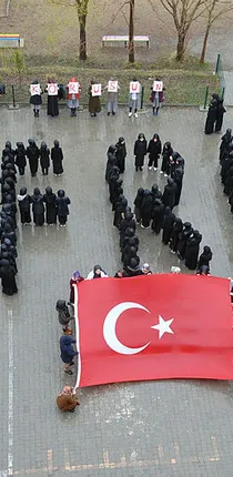 Kız Anadolu İmam Hatip Lisesinde görevli 15 öğretmen, 150 öğrencisiyle birlikte Zeytin Dalı Harekatı'na destek vermek amacıyla okul bahçesinde bedenleriyle Afrin yazdı. Öğrenciler yağmura rağmen okul bahçesinde Türk bayrağı açarak, harekatta görevli Mehmetçiğe moral ve destek oldu.