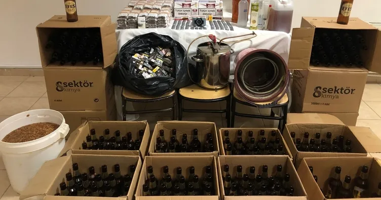 Merkez ilçesinde ikamet eden İ.K.(61), İ.K.(56) ve E.H.(49) isimli şahıslara ait 4 adreste, yasadışı yollardan içki ticareti yapıldığının belirlenmesi üzerine Kastamonu İl Jandarma Komutanlığı ekipleri tarafından şahısların ikametlerinde yapılan aramada; 3 bin 500 adet makarona basılı kaçak tütün, 2 bin 800 adet kaçak makaron, bin 500 adet şeffaf kilitli poşet, 45 litre etil alkol, 10 litre el yapımı viski, 100 adet cam şişe, 271 adet boş bira şişesi, 260 adet sigara kutusu, 3 It el yapımı rakı, 1 adet akıl damıtma düzeneği, 1 adet cam şişe kapak basma aparatı ele geçirildi.
