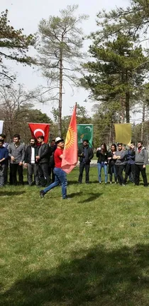 Türk Cumhuriyetlerinden bazı öğrencilerin yöresel sazlarla ve şarkılarla çeşitli sahne performansları sergilediği kutlama etkinliği daha sonra açık alanda devam etti.
