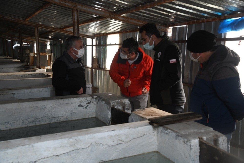 İl Tarım ve Orman Müdürü Mustafa Şahin, Pınarbaşı ilçesinde bulunan kaynak suları üzerinde kurulu 3 firmaya ait alabalık kuluçkahanelerinde incelemelerde bulundu.