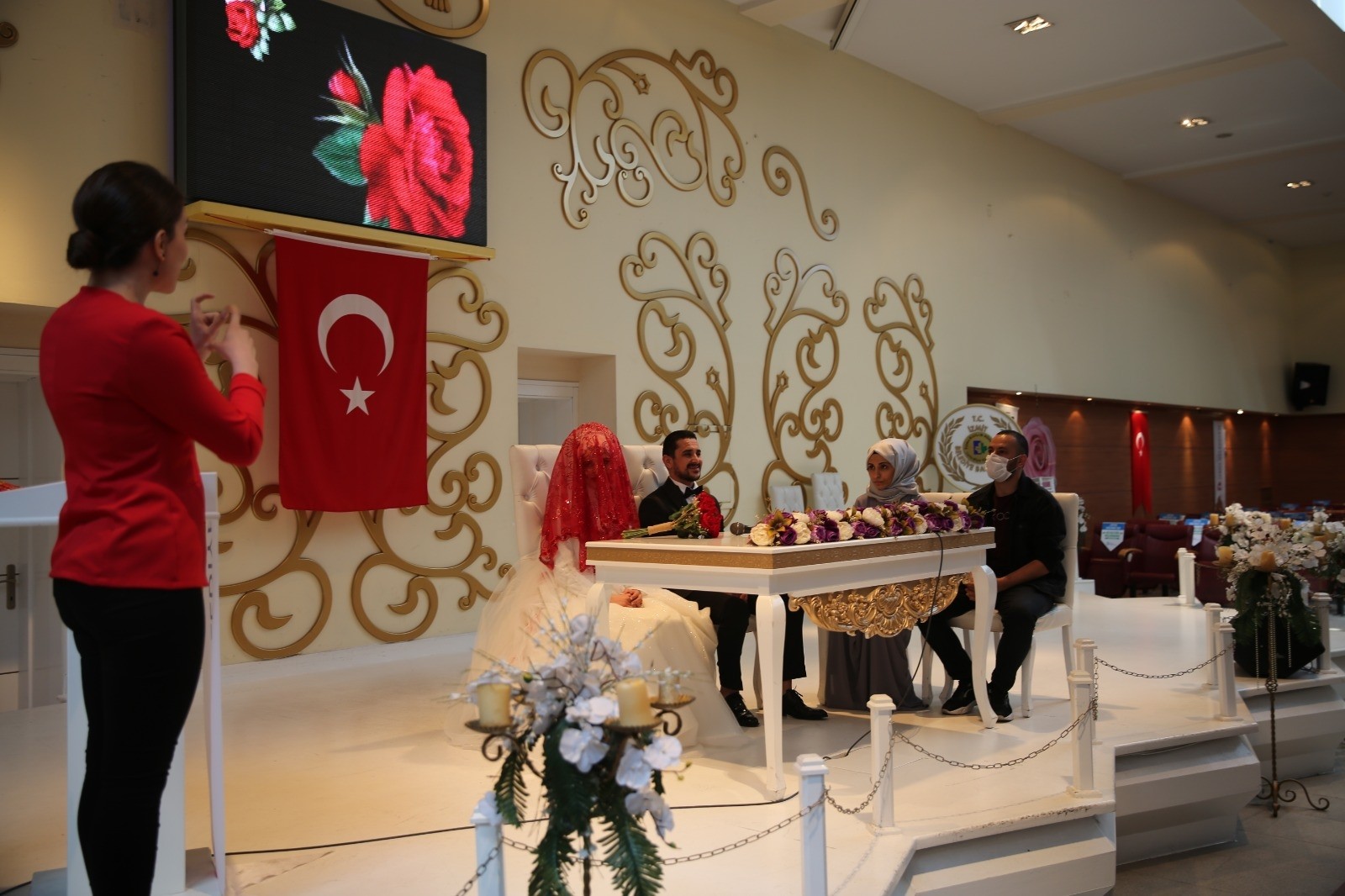 İşitme engelli Sibel Ateş (26) ve Semih Çağlar (27), 7 Haziran Türk İşaret Dili Bayramı’nda hayatlarını birleştirdi. İşaret Dili tercümanı Betül Tonyalıoğlu eşliğinde kıyılan nikahla genç çift, bir ömür mutluluğa işaret dili ile ‘Evet’ dediler. Genç çiftin mutluluklarına ortak olan yakınları, çiftin mutlu anlarına alkışlarla eşlik ettiler.