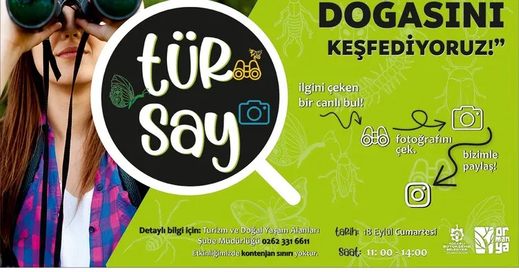 Ormanya Doğal Yaşam Parkı'nda, Kocaeli'nin ilk TÜR SAY etkinliği gerçekleştirilecek. Kocaeli'nin biyoçeşitliliği için önemli bir veri kaynağının oluşacağı etkinlik 18 Eylül Cumartesi günü ziyaretçilerin katılımıyla Ormanya'da gerçekleştirilecek. Bioblitz olarak bilinen ve Türkiye'de TÜR SAY olarak adlandırılan etkinlikte, bulunulan bölgenin flora ve faunası oluşturan tüm canlılar (ağaçlar, çiçekler, mantarlar, böcekler, kuşlar, memeliler vb.) cep telefonlarına yüklenen "inaturalist" adlı uygulama ile çekilen fotoğraflarla gerçekleştirilecek. Etkinlik, alanında uzman eğitmenler ve doğa rehberleri eşliğinde, hem Ormanya'nın eşsiz güzelliğini görmek, hem de yaban hayatının merak uyandıran dünyasını keşfetmek isteyen tüm ziyaretçilere açık olacak.