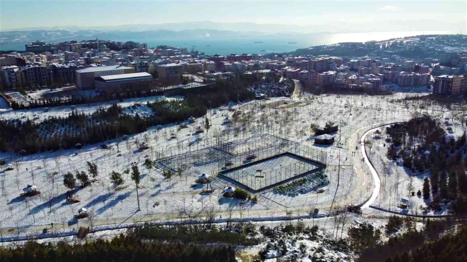 Kocaeli’nin Gebze ilçesinde bulunan Tatlıkuyu Vadisi’nin kar manzarası havadan görüntülendi. Gebze’de, kafa dinlemek, yürüyüş yapmak için ve çocukların oyun oynamaları için uğrak noktalardan biri olan Tatlıkuyu Vadisi karla kaplandı. Karı fırsat bilip temiz hava almak isteyen vatandaşlar, karla oynamak isteyen çocuklar vadiye akın etti. Beyaz gelinliğini giyen vadinin güzelliği ise drone ile havadan görüntülendi.