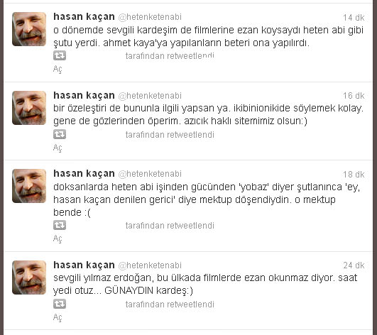 Hasan Kaçan kendi Twitter hesabından Yılmaz Erdoğan'a seslendi. İşte Hasan Kaçan'ın Türk sinemasında ezan tartışmasıyla ilgili yazdıkları: