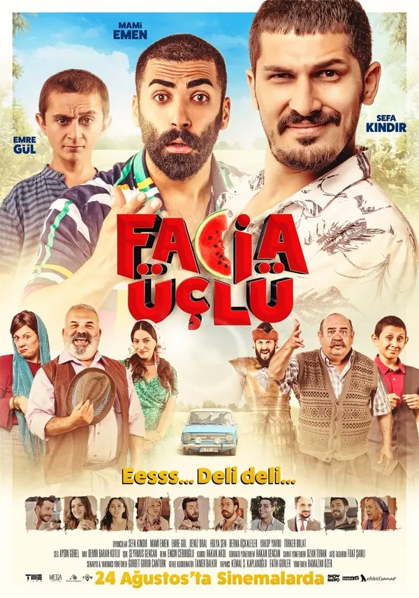 Başrollerini Sefa Kındır, Mami Emen ve Emre Gül'ün paylaştığı filmde bu isimlerin yanı sıra Deniz Oral, Hülya Şen, Yakıp Yavru, Berna Üçkaleler, Nez Demir, Selçuk Büyük gibi ünlü isimler de yer aldı. Filmin oyuncularının tam kadro katıldığı gala gecesine ünlü oyuncular ve sosyal medya fenomenleri de yoğun ilgi gösterdiler. Filmin senaryosunu Gurbet Gurur Cantürk kaleme aldı, yönetmen koltuğunda ise Ramazan Özer oturdu. Ömer Faruk Bostan, Ahmet Parlak ve Heijan gibi sanatçılar da müzikleri ile filme renk kattılar. Facia Üçlü filmi, Kurban Bayramının son günü 24 Ağustos'ta izleyiciyle buluşuyor.