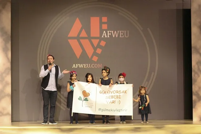 Bu yıl ülkemizde ikincisi düzenlenen ve yabancı tasarımcıların yanı sıra ünlü modacı Erol Albayrak'ın tasarımlarının da yer aldığı AFWEU Fashion Week organizasyonun ikinci gecesinin tüm geliri Gülmek İyileştirir Derneği yararına bağışlandı. Gecenin büyük sürprizi, aynı zamanda derneğin yönetim kurulu üyesi olan ünlü oyuncu İlker Ayrık'ın, lösemi tedavisi görüp sağlığına kavuşan beş minik kahraman ile birlikte podyuma çıkması oldu.