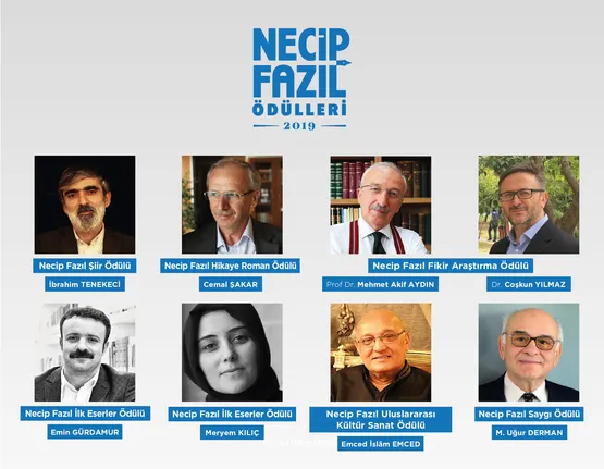 Prof. Dr. M. Fatih Andı, Prof. Dr. Hicabi Kırlangıç, Prof. Dr. Turan Karataş, Dr. Öğr. Üyesi Ahmet Murat Özel ve Necip Tosun'dan oluşan jüri heyetinin aldığı kararlar neticesinde 2019 Necip Fazıl Ödülleri'ne layık görülen isimler şöyle: