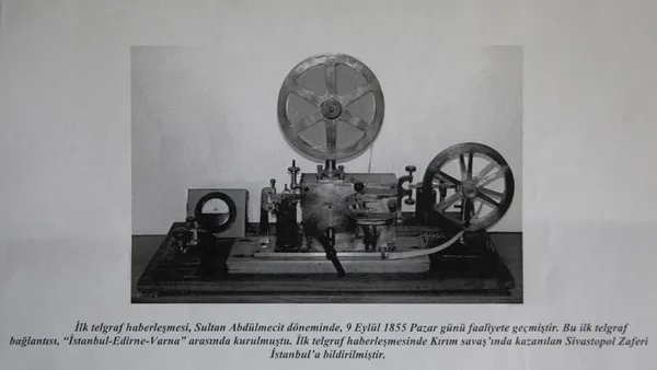 "ABD'den araştırmacı Samuel Morse bulduğu aletle, Amerika ve Avrupa'da yardımcı olacak devlet bulamadığı için İstanbul'a gelmiş, Sultan Abdülmecid Han'dan yakın ilgi görmüştü. Varna'dan saraya kadar gelen hat tamamlanınca Sultan'a 'Emredin yazalım.' dediği kayıtlarda yer alır. Bunun üzerine Sultan Abdülmecid Han'ın 'Beklenen gemi geldi mi? Avrupa ne hal içindedir?' sözleri, vericiyle Varna'ya ulaşmış ve hayretler içinde gelen cevap Sultan'a ulaştırılmıştır. Morse, elmaslı bir madalya ile üzerinde Abdülmecid Han'ın imzası olan patent verilerek taltif edilmiştir. İlk telgraf haberleşmesi ise Sultan Abdülmecid döneminde 9 Eylül 1855 Pazar günü faaliyete geçmiştir."