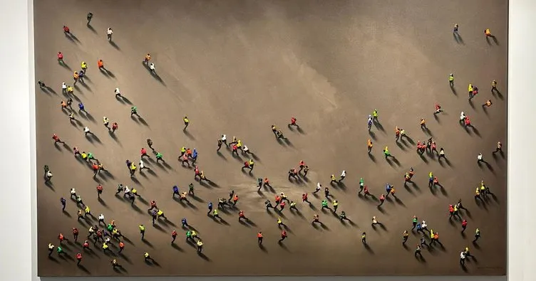 İzleyici bu sergide, kalabalıkların daha fazla olduğu, kozmos da henüz dağılmamış, "Frekans"a ve "Döngü" ye girmemiş o ilk bilinmezlik yolundaki insanlar ile soyutun değil, somutun dikkat çektiği sanatçının ilk serisi 'Araf' ile tekrar karşılaşıyor.