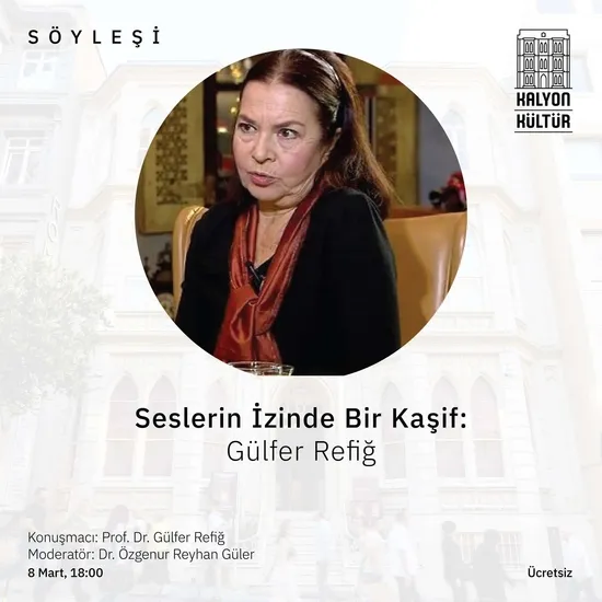 8 Mart 2024, Cuma, 18.00-19.00 / Seslerin İzinde Bir Kâşif: Gülfer Refiğ / Konuşmacı: Prof. Dr. Gülfer Refiğ – Moderatör: Dr. Özgenur Reyhan Güler / Yaş Grubu: Yetişkin