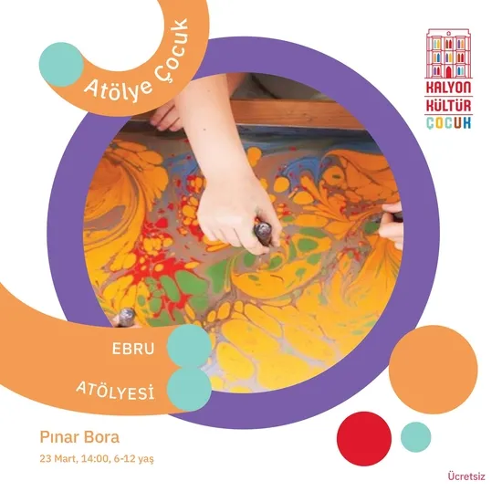 23 Mart 2024, Cumartesi, 14.00-15.00 / Çocuklarla Ebru Atölyesi / Eğitmen: Pınar Bora