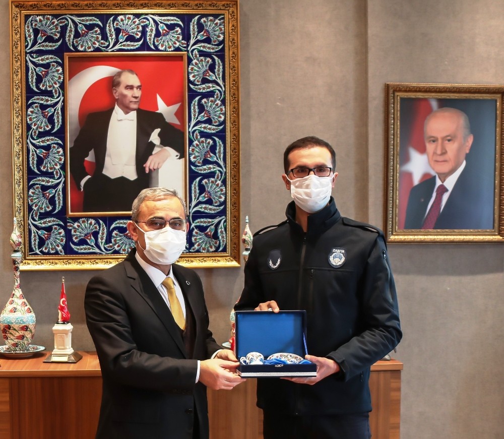 Belediye Başkanı Alim Işık, katıldığı Balıkesir Erdek’te yapılan Kyzikos Ultra Maraton yarışında 85 kilometreyi 9 saat 43 dakikada tamamlayarak birinci olan Zabıta Memuru Hüseyin Gümüş’ü makamında kabul etti.