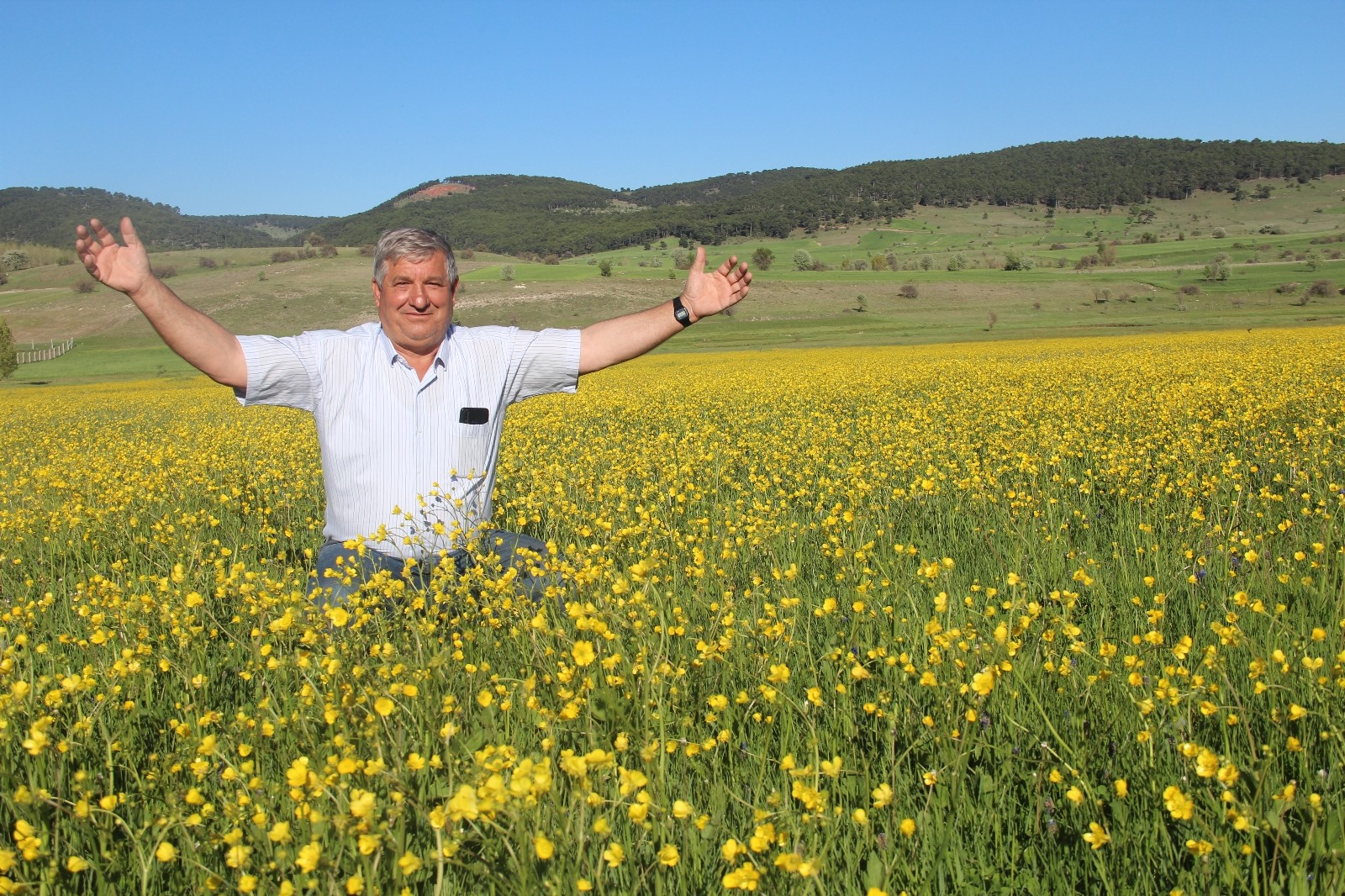 Tarlalarda açan sarı çiçekler görsel şölen oluşturdu