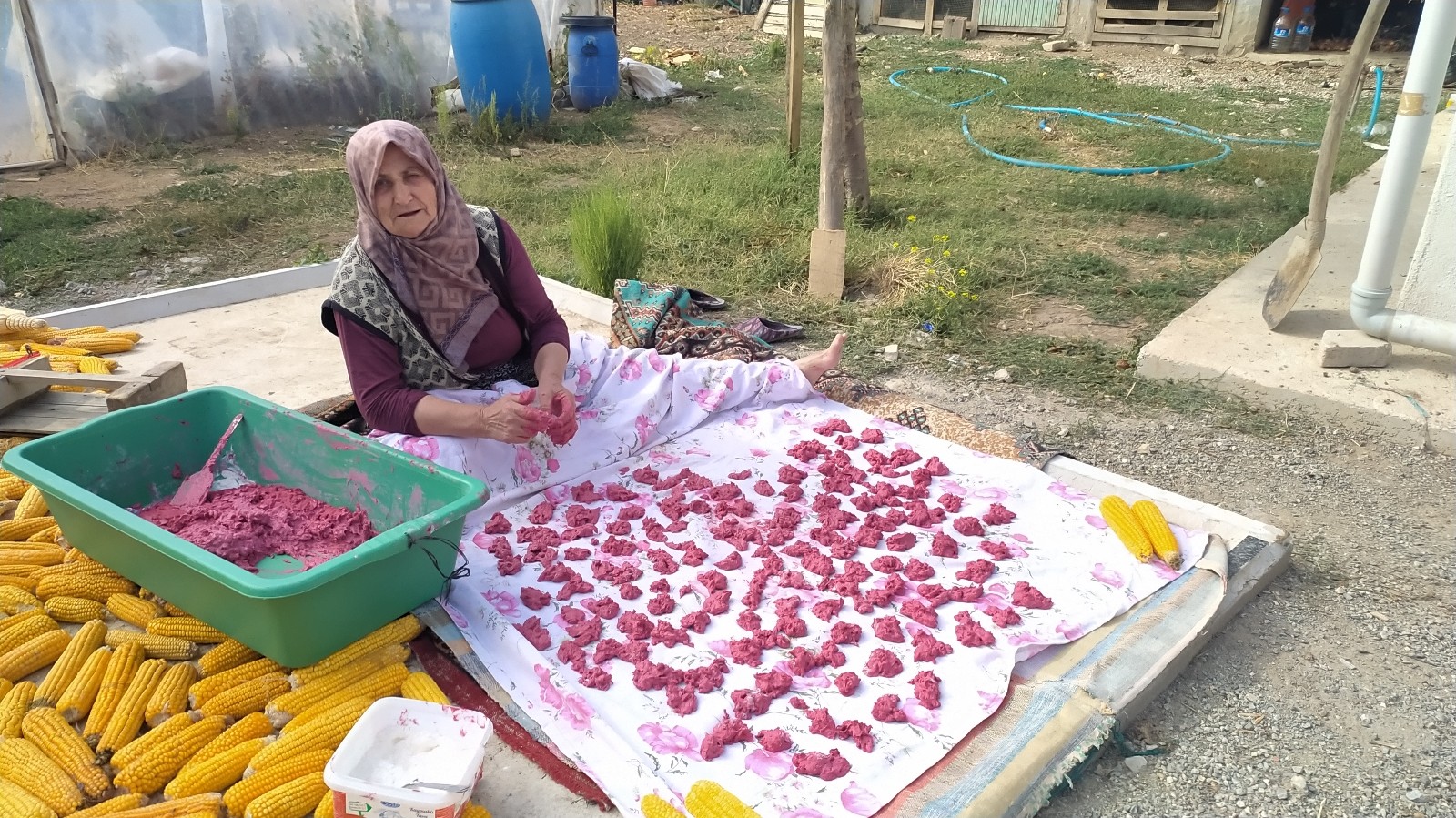 Fatma Çakır, “ Kızılcık’tan ekşi tarhana yapmak meşakkatli olsa da mahallede bulunan kadınlar imece usulü birbirlerine yardımcı olurlar. Ekşi tarhana yapmak için önce iyice olgunlaşan kızılcık meyvelerini un ve tuz ile karıştırarak yoğurup hamur haline getirdikten sonra küçük parçacıklara ayırarak yere serdiğimiz bezlerin üzerinde güneşte iki saat kadar kurutuyoruz. Daha sonra kuruyan kızılcık hamurunu ellerimizle iyice ovarak toz haline getirip kavanozlara doldurup özellikle kış aylarında bolca tüketiriz. Bu yıl kuraklık yüzünden kızılcık üretimi çok düştü ve geçen yıl 10 TL civarında olan kızılcık fiyatları bu yıl 20-25 TL’ye kadar çıktı. Bizlerde ancak kendimize yetecek kadar ekşi tarhana yaptık " diye konuştu.