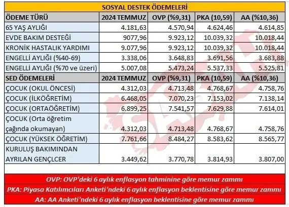65 yaş, engelli ve evde bakım maaşı başta olmak üzere sosyal destek ödemeleri memur zammı kadar artacak.