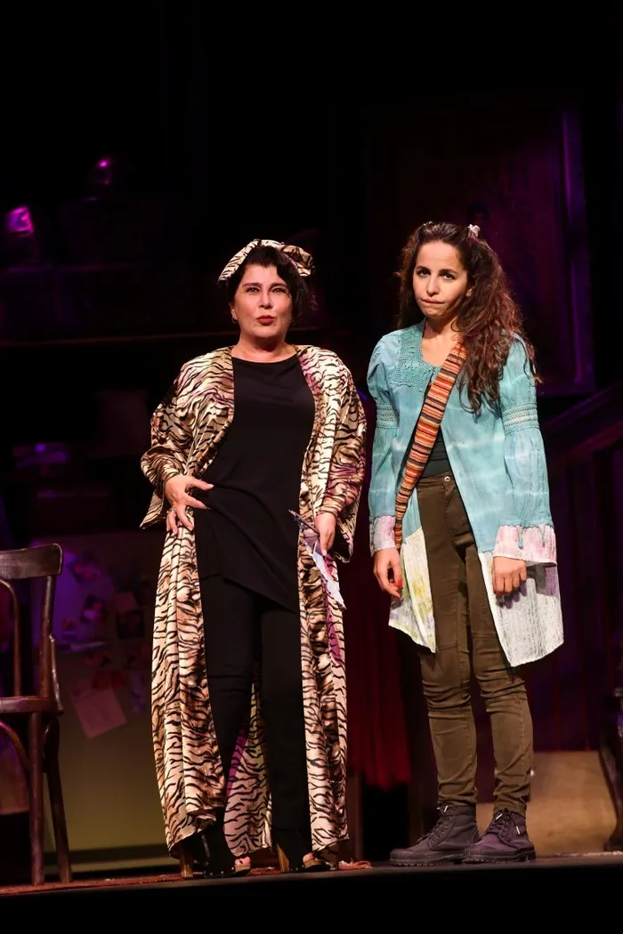 Bir 'Leyla' anlatıyor, 70'li yıllara karakterlerin çocukluklarına gidiyoruz; bir 'Melike' anlatıyor, 90'lı yıllara gidiyoruz. Bazen sektörde kadın oyuncu olmaktan dem vuruyorlar. Bu noktada Dinçel'in sağlam tespitleri güldürüyor. Mesela, "Kadın oyuncu yarım bilet, erkek oyuncu tam bilet" diyor 'Leyla'... 'Melike' de "Kadın oyuncular, 30'undan sonra antrenör olan futbolcular gibi" diyor. Kadın oyuncuların 24 yaşından sonra yok sayılmaları, dişleri dökülen babaanne rollerine mahkum edilmeleri, erkek oyuncuların bir türlü yaşlanmaması, kendilerinden 20 yaş küçük kızlarla aşk yaşamaları esprili bir dille anlatılıyor. İkili, kadınların sesi oluyor.