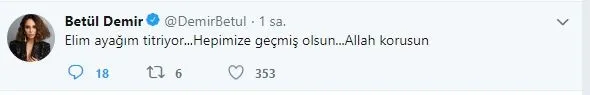 Elim ayağım titriyor... Hepimize geçmiş olsun... Allah korusun