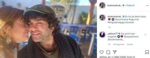 Oyuncu, yayınladığı romantik kareyi "Bu kız bana hasta" notuyla yayınladı.Bülent Şakrak'ın eşiyle verdiği poz kısa sürede binlerce beğeni aldı. Dört yıldır evli olan çiftin Melisa ve Ali adında iki çocuğu bulunuyor.