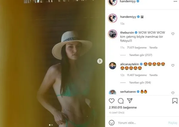 Kerem Bursin'den sevgilisi Hande Erçel'in bikinili fotoğrafına flaş yorum!