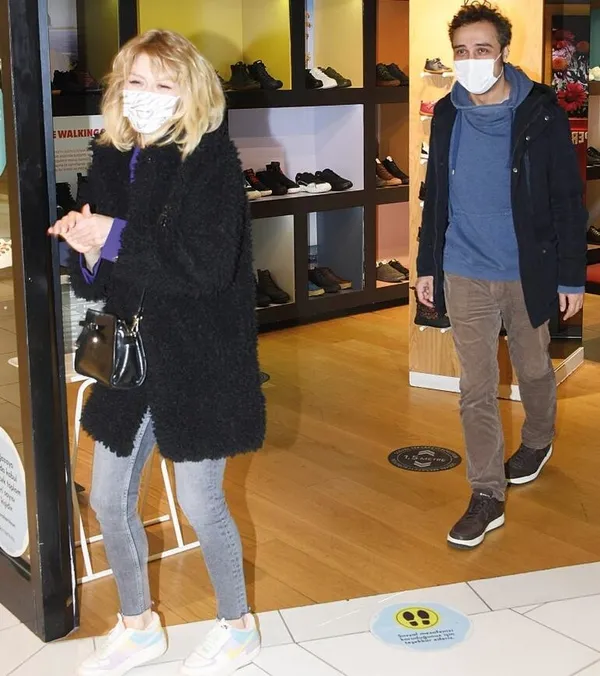 Karabulut, AVM'deki bir ayakkabı mağazasından çıktıkları sırada muhabirleri görünce panikledi.