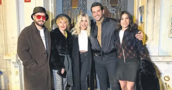 İrem Derici ve sevgilisi Cem Belevi, Belevi'nin yeni projesi Cemiyet Gazinosu için bir mekanda bir araya geldi.