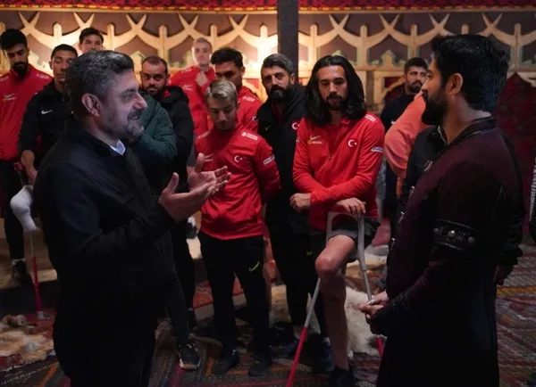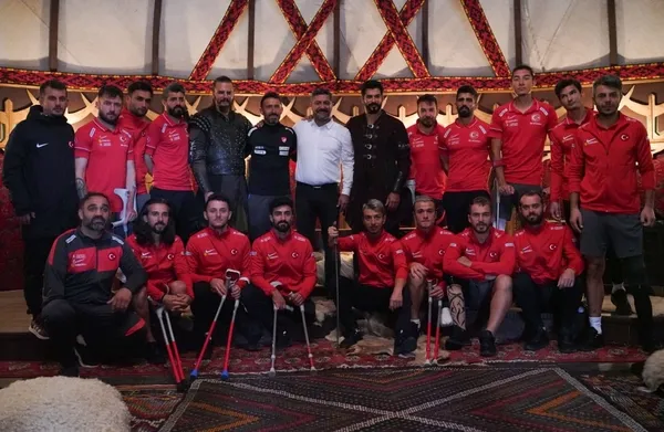 Dünya Kupası'nda finale yükselen Ampute Milli Takımı futbolcuları, Teknik Direktör Osman Çakmak, Türkiye Bedensel Engelliler Federasyonu Başkanı Muaz Ergezen ve İdari Menajer Fatih Eldal Kuruluş Osman dizisi setini ziyaret ettiler.