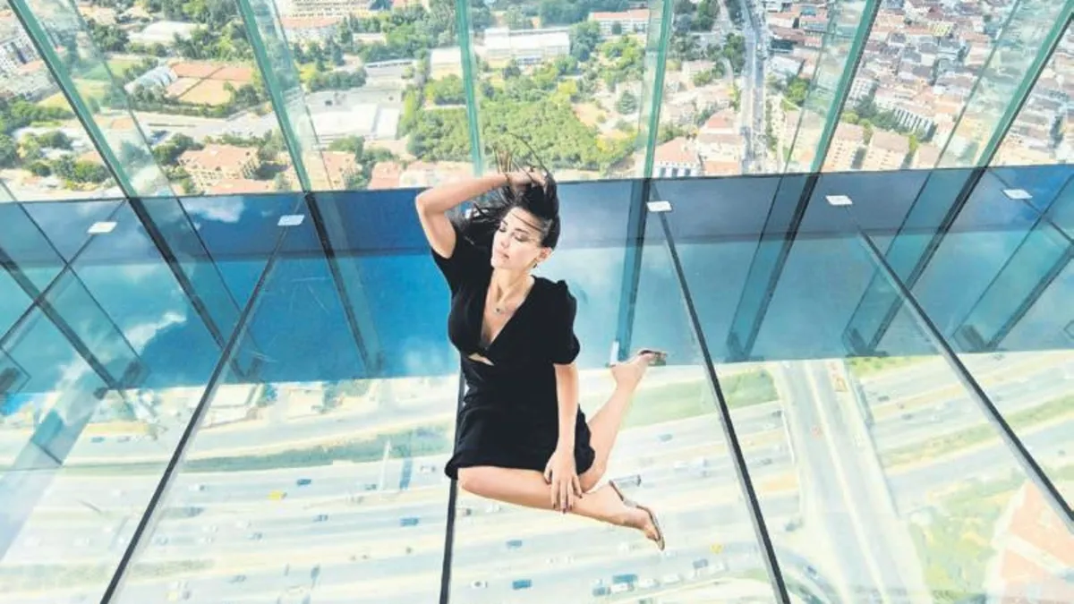 Tuvana Türkay, 300 metre yükseklikte, 27 metre uzunluğundaki Avrupa'nın en uzun cam yürüyüş rotasındaydı. Bol bol fotoğraf çeken oyuncu 'Çok hoşuma giden bir deneyim oldu' diye konuştu.