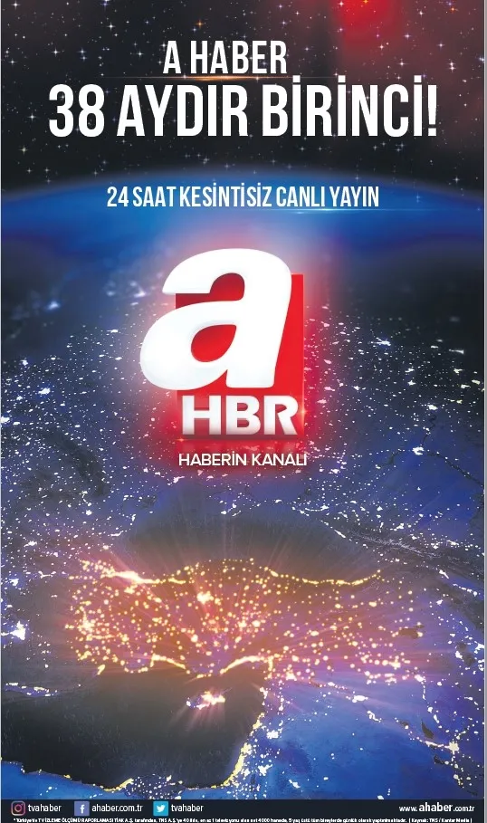 Türkiye'nin yerli ve milli kanalı A Haber, yayıncılıkta dünya rekoru kırdı. A Haber 2017 özel yayınında tam 121 noktadan bağlantılar gerçekleştirdi. A Haber tüm yıl olduğu gibi, o gece de dünyanın dört bir yanında en doğru haberi en hızlı şekilde verebilmek için haber nöbetindeydi.