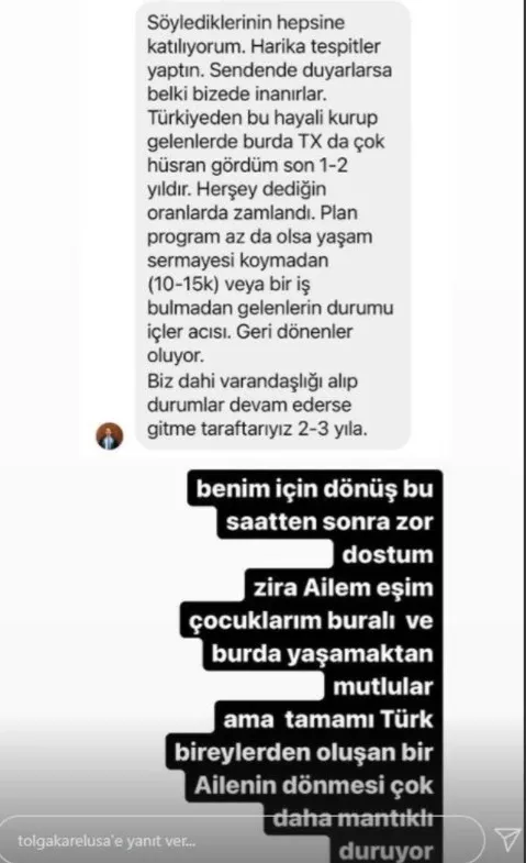 Karel bir takipçisinin 'Türkiye'ye geri mi dönüyorsunuz?' sorusuna da içtenlikle cevap vererek, "Benim için dönüş bu saatten sonra zor dostum. Zira ailem, eşim, çocuklarım buralı... Ve burada yaşamaktan mutlular ama tamamı Türk bireylerden oluşan bir ailenin dönmesi çok daha mantıklı duruyor." diye konuştu.