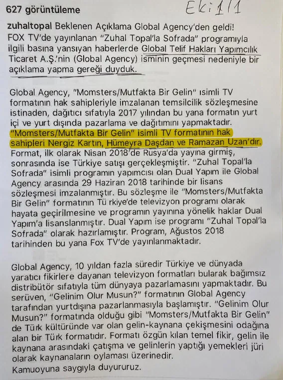 Ekipteki bir diğer isimse Hümeyra Daşdan'dı... Yani bu üç yapımcı; çalıştıkları Yemekteyiz programının içeriğine, sadece kaynanaları ekleyip yeni bir program gibi Fox TV'de yayınladı.