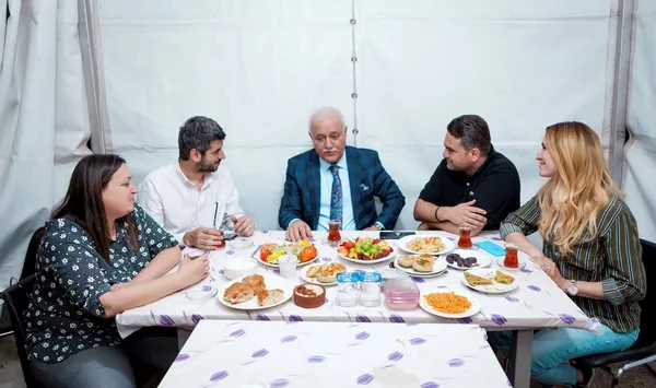 Prof. Dr. Nihat Hatipoğlu'nun iftar programını ziyaret ettik. Hoşgörülü ve toplumun her kesimini büyük bir samimiyetle kucaklayan Hatipoğlu'nun önce iftar duasına katıldık. Yayın sonrasında da sahne arkasında tüm ekip ve ailesi ile birlikte iftarını açan Hatipoğlu'nun masasına davet edildik. O kadar güzel bir evsahibiydi ki Hatipoğlu; bizleri en güzel şekilde ağırladı. Menümüzde hurmamız, pidemiz, çorbamız, taze fasulyemiz vardı... Sofrada bizimle tek tek ilgilenen Hatipoğlu, ekranda bu kadar çok ilgi ve alaka görmesinin şifresini de vermiş oldu; samimiyet ve hoşgörü... Sohbetimizin bir bölümünde sosyal medyanın kullanımı hakkında da konuşan Hatipoğlu, şunları söyledi: "Gençlere tavsiyem, sosyal medyada yanlış potaya girmesinler.