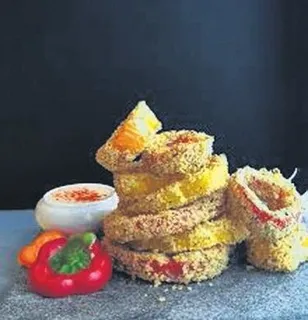 Son derece pratik ve sunum olarak da muazzam oluyor. Sadece biberlere değil, aynı iç harç ile domates ya da patlıcan halkaları da enfes oluyor.