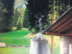 Ellerini Alp Dağları'na doğru kaldırmış, isyan ve korku içinde bir çocuk heykeli.