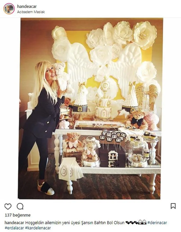 Kardelen Acar ilk bebeğini bu sabah dünyaya getirdi. Mutlu haberi yenge Hande Acar Instagram sayfasından duyurdu. Çift kızlarına 'Derin' adını verdi. Fotoğraf: Hürriyet
