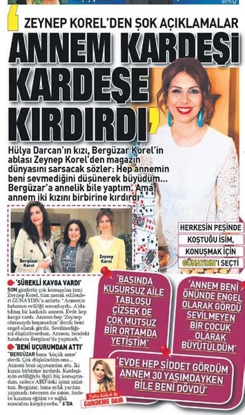 Yaptığı açıklamalarla son günlerin en çok konuşulan ismi oldu Hülya Darcan ve Tanju Korel'in kızı, Bergüzar Korel'in ablası Zeynep Korel. Geçtiğimiz günlerde çocukluk travmaları, annesi ve kardeşiyle ilişkisi, Amerika'daki hayatı hakkında GÜNAYDIN'a çarpıcı açıklamalar yapan Korel, magazin dünyasının gündemine oturdu. Zeynep Korel'e bu açıklamaların ardından neler hissettiğini ve bundan sonra nasıl bir yol izleyeceğini sordum...