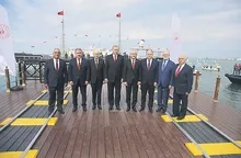 Cumhurbaşkanı Recep Tayyip Erdoğan ve tüm siyasi partilerin liderleri bir arada... Arkalarında Atatürk ve silah arkadaşlarının Samsun'a ilk adım atışlarını sembolize eden balmumu heykelleri...