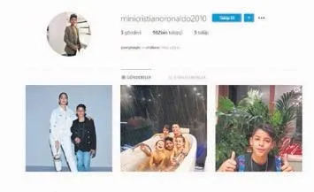 Futbol yıldızı Cristiano Ronaldo'nun oğlu Cristiano Ronaldo Jr. da Instagram hesabı açtı. Ronaldo Jr., bir günde yaklaşık 1 milyon takipçiye ulaştı. Baba Ronaldo'nun ise Instagram'da 205 milyon takipçisi var.