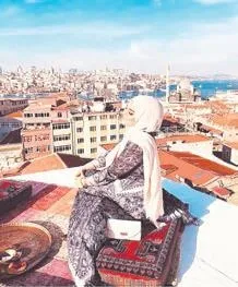 İstanbul Mahmutpaşa'da bulunan Valide Han'ın terasındaki kaçak yapıda, selfie meraklıları muhteşem manzarayı arkalarına alıp 100 liraya fotoğraf çektiriyor.