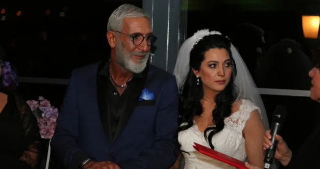 Beyaz saçı ve sakalıyla dikkat çeken Özer, Şinasi Günaydın imzalı takım elbise giyerken Dura'nın gelinlik tercihi Fevziye Çamer oldu.