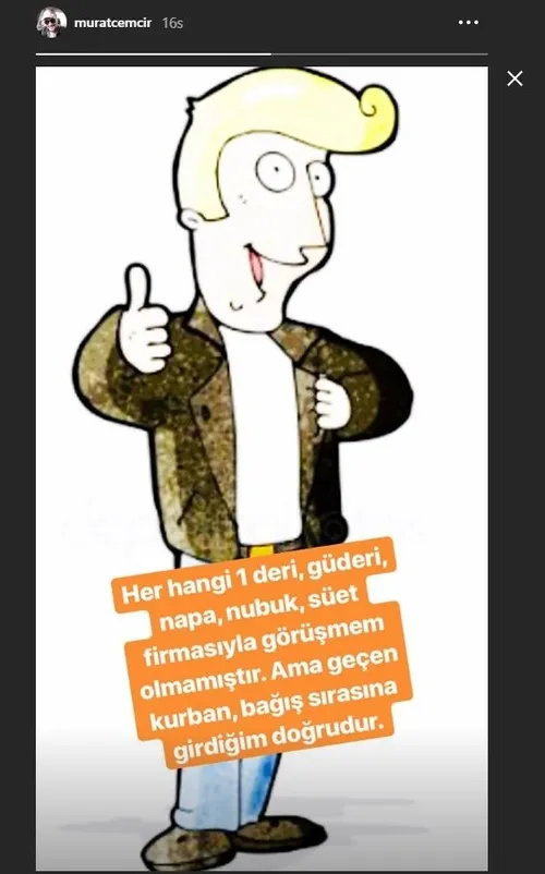 Murat Cemcir'den, önceki gün reklam anlaşmalarıyla ilgili iddialara esprili bir yanıt geldi. Ünlü oyuncu, sosyal medyada şu notu paylaştı: 'Herhangi bir deri, güderi, nubuk, süet firmasıyla görüşmem olmamıştır. Ama geçen Kurban, bağış sırasına girdiğim doğrudur.'