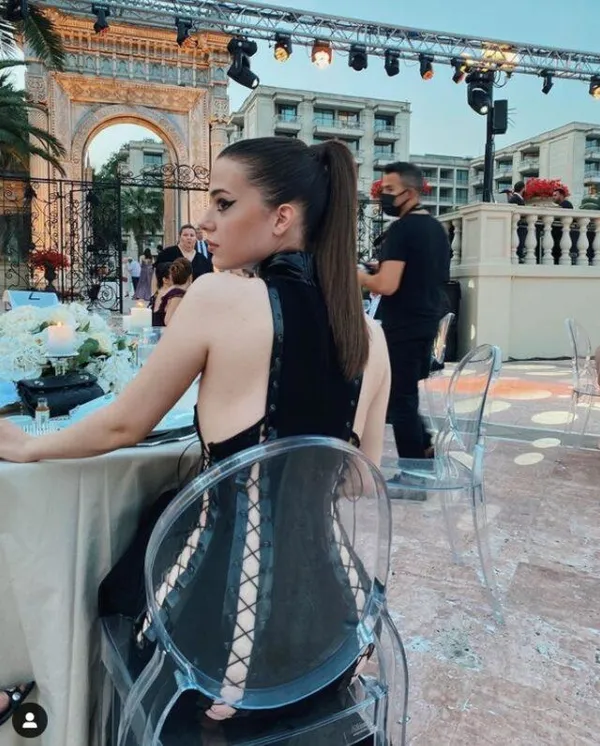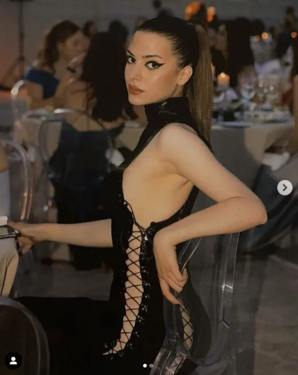 Siyah çapraz ipli kalça kısmına kadar açık olan elbisesiyle çektirdiği fotoğrafı Instagram hesabından paylaşan genç kızın fotoğrafına ablası Deren Talu ve annesi Defne Samyeli kalpli emojiler bıraktı.
