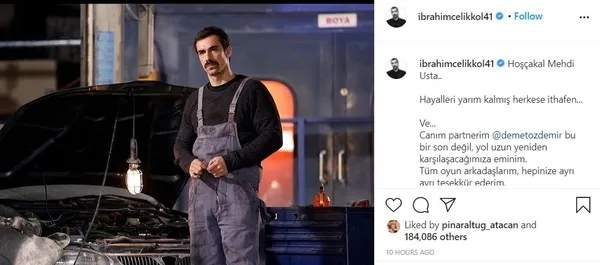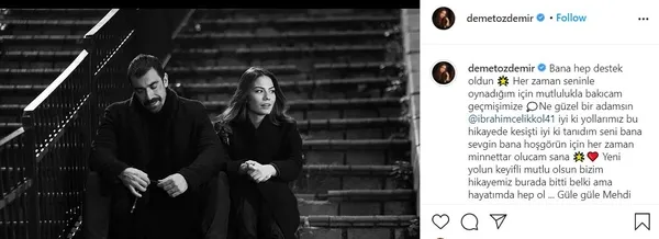İbrahim Çelikkol'da Instagram'ından partneri Demet Özdemir'e ve çalışma arkadaşlarına vedada bulundu.